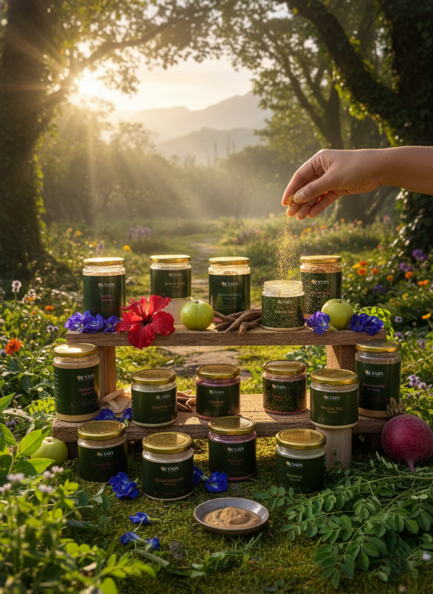 At Suvarn Naturals, we believe that the best remedies don’t come from a lab—they come from nature and the wisdom passed down through generations. Inspired by the age-old secrets shared by our Dadi-Nani (grandmothers) and rooted in Indian Ayurvedic traditions, we bring you a carefully curated range of 100% pure, natural, and chemical-free herbal powders.